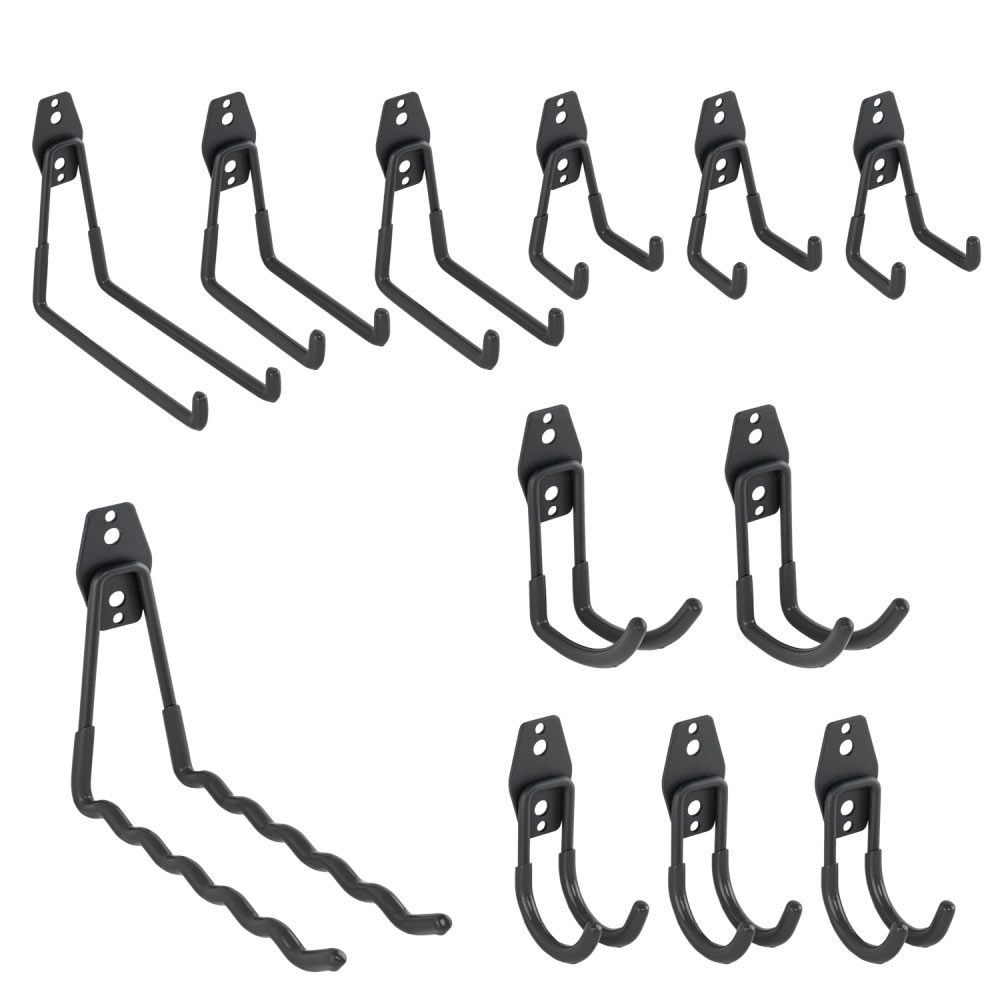 Набір вішаків для інструментів, виготовлених з нержавіючої сталі, покритої чорним ПВХ, — це простий спосіб швидко навести порядок у гаражі, майстерні або коморі для інструментів. Завдяки міцній конструкції та можливості монтажу на різних поверхнях легко підтримувати порядок і мати найчастіше використовувані інструменти завжди під рукою.Гачки для інструментів, набір 12 штук, навантаження 10-20 кг, DIY-HG20SET1/BOX