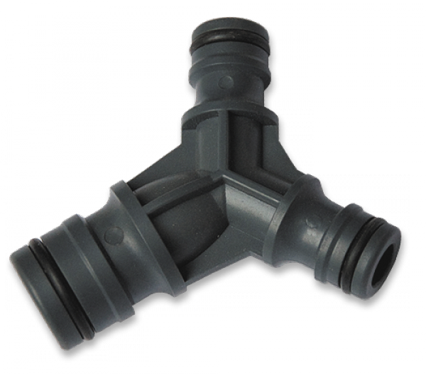 Трійник призначений для з'єднання трьох шлангів з швидкознімними конекторами: два виходи типу STANDARD та один - типу POWER JET, дозволяючи таким чином створити розгалуження поливальної лінії.Виготовлений з високоякісного пластику.