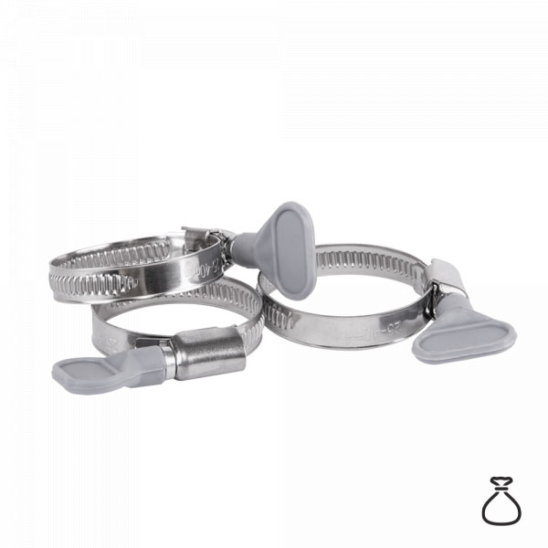Форма хомута із загнутими назовні краями стрічки перешкоджає пошкодженню шланга.