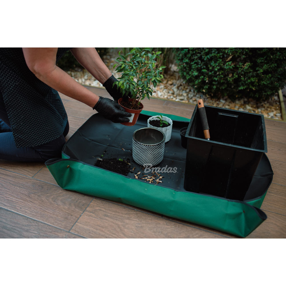 Зробіть ставку на зручність і чистоту під час пересадки рослин завдяки практичному килимку для пересадки рослин. Міцна конструкція і водонепроникне покриття роблять його незамінним аксесуаром для дому, саду і балкона, гарантуючи комфорт і порядок під час роботи з рослинами.Килимок для пересадки рослин Oxford 600D, 66x66 см, у складеному вигляді 40x40x11 см, TQ-P2/070