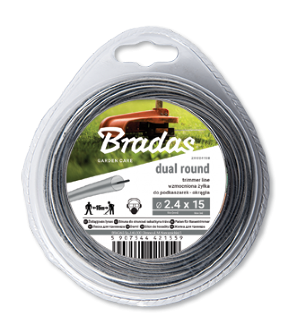 Посилена волосінь для косіння з перетином у формі круга. Пакування: блістер.Ліска для тримера RIPPER DUAL "круг" 2,4мм х 15м, блістер, ZRO2415B
