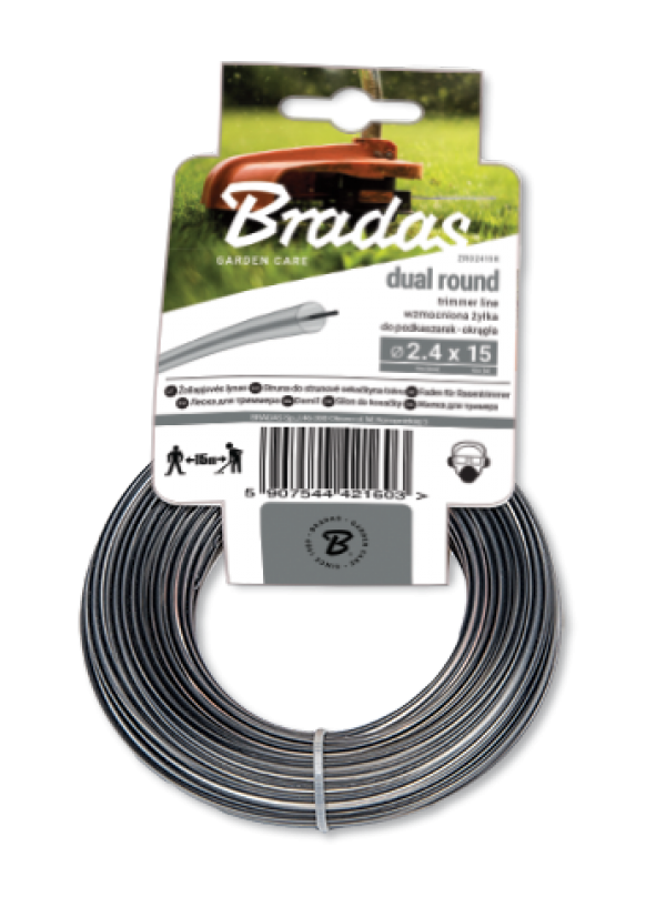 Двокомпонентна нейлонова волосінь до тримера з армувальним сердечником. Має круглий перетин, завдяки чому добре справляється зі скошуванням майже всіх видів рослинності. Є більш зручною у використанні, бо добре укладається у котушку, більш економно витрачається.Завдяки наявності додаткового армування є міцною, надійною та зносостійкою. Недоліком круглого перетину є високий рівень шуму, що створюється при роботі.