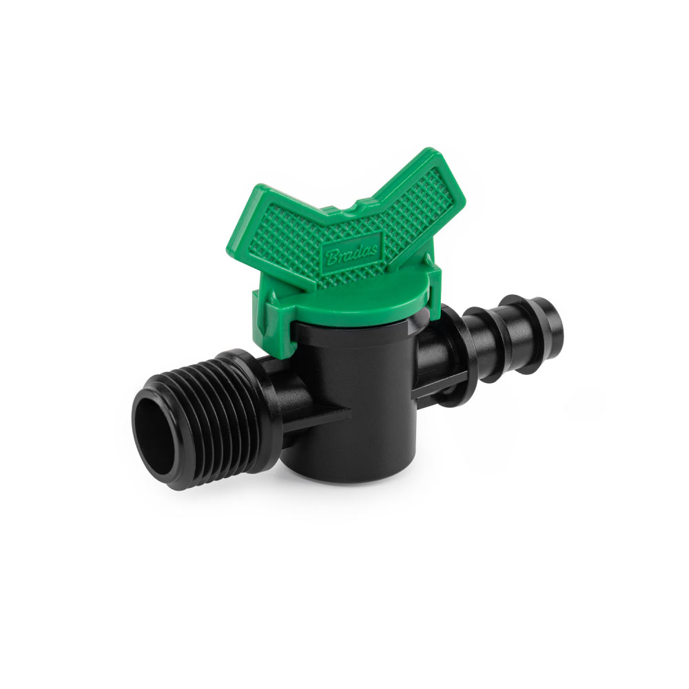 Мінікран для застосування у системах крапельного зрошення, мікро- та автоматичного поливу. З однієї сторони має штуцер під PE трубку або шланг, з протилежної - зовнішню різьбу для з'єднання з іншою сполучною арматурою з відповідним типом різьби та діаметром.Мінікран дозволяє керувати окремою поливальною лінією.