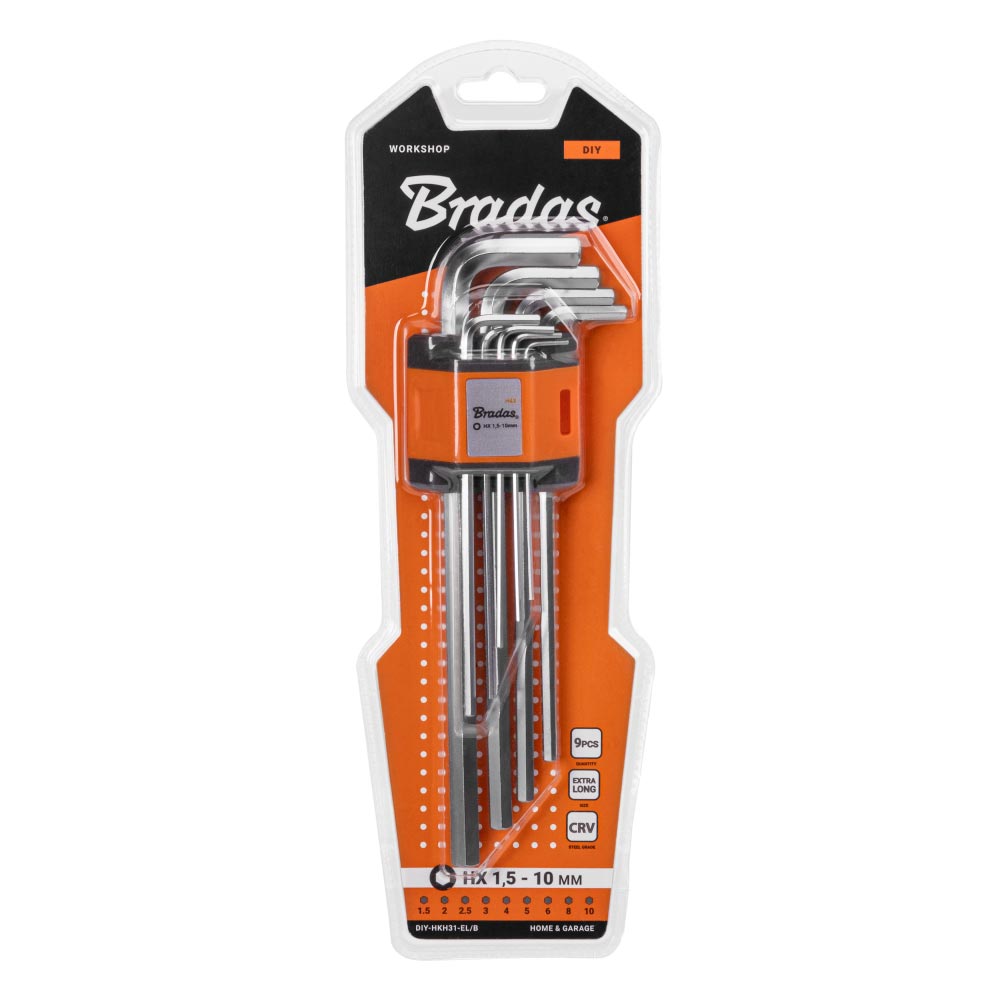 Набір шестигранних ключів HEX 1,5 - 10 мм, 9 шт., екстра довгі, DIY-HKH31-EL/B
