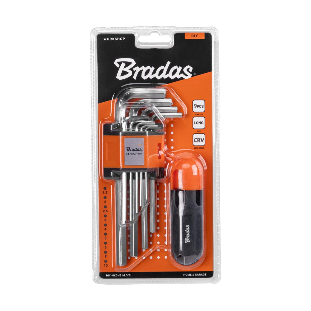 Набір шестигранних ключів HEX 1,5 - 10 мм з T-подібною ручкою, 9 шт., довгі, DIY-HKGH31-LO/B