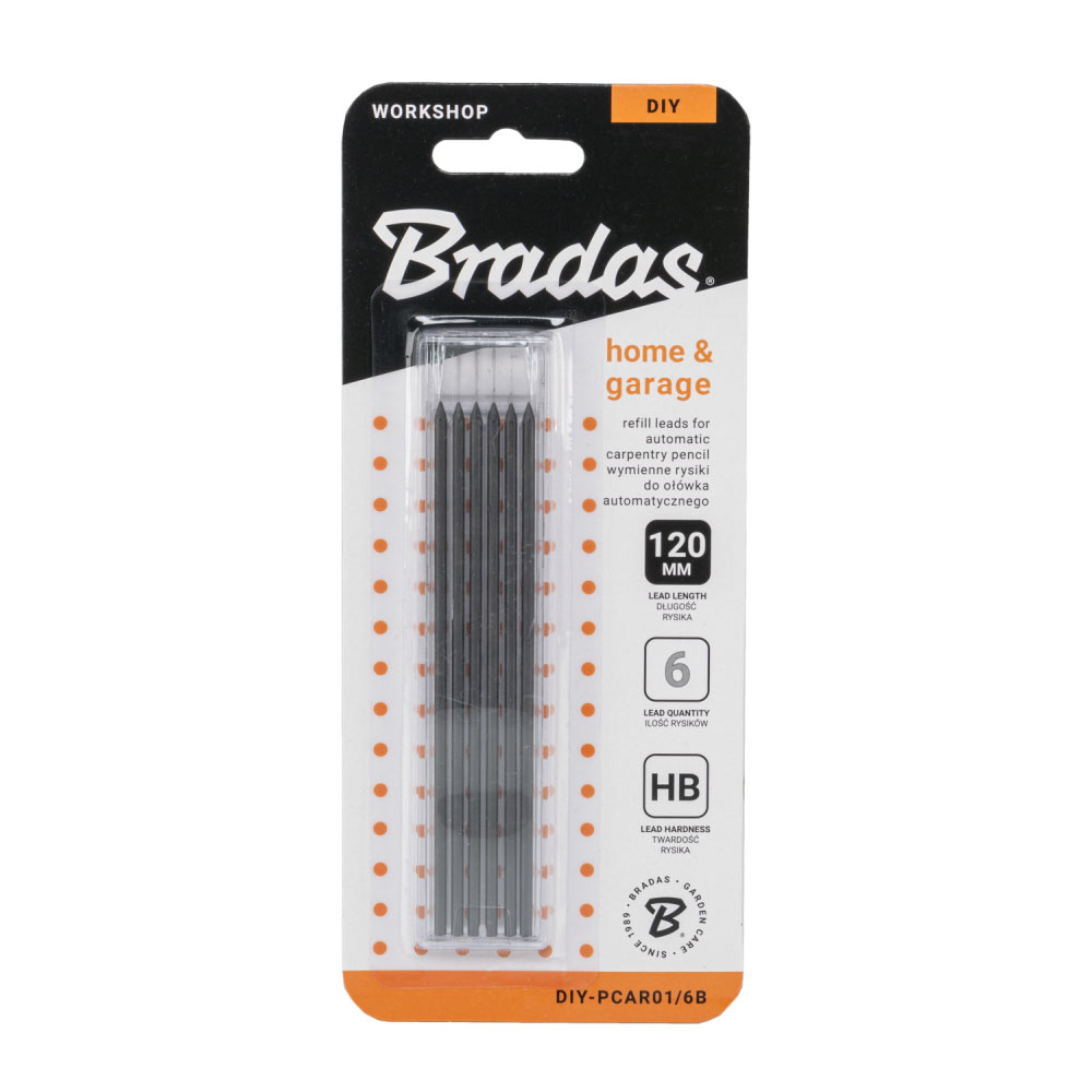 Практичний і міцний автоматичний олівець для столярних робіт довжиною 14,5 см — незамінний інструмент у роботі кожного професіонала. Завдяки міцній конструкції з АБС-пластику та металу, а також вбудованій точильці ви завжди готові до точного маркування на різних поверхнях. Ідеально підходить для отворів, щілин і кутів, куди не дотягнеться звичайний олівець.Набір стрижнів для автоматичного будівельного олівця, графіт, DIY-PCAR01/6B