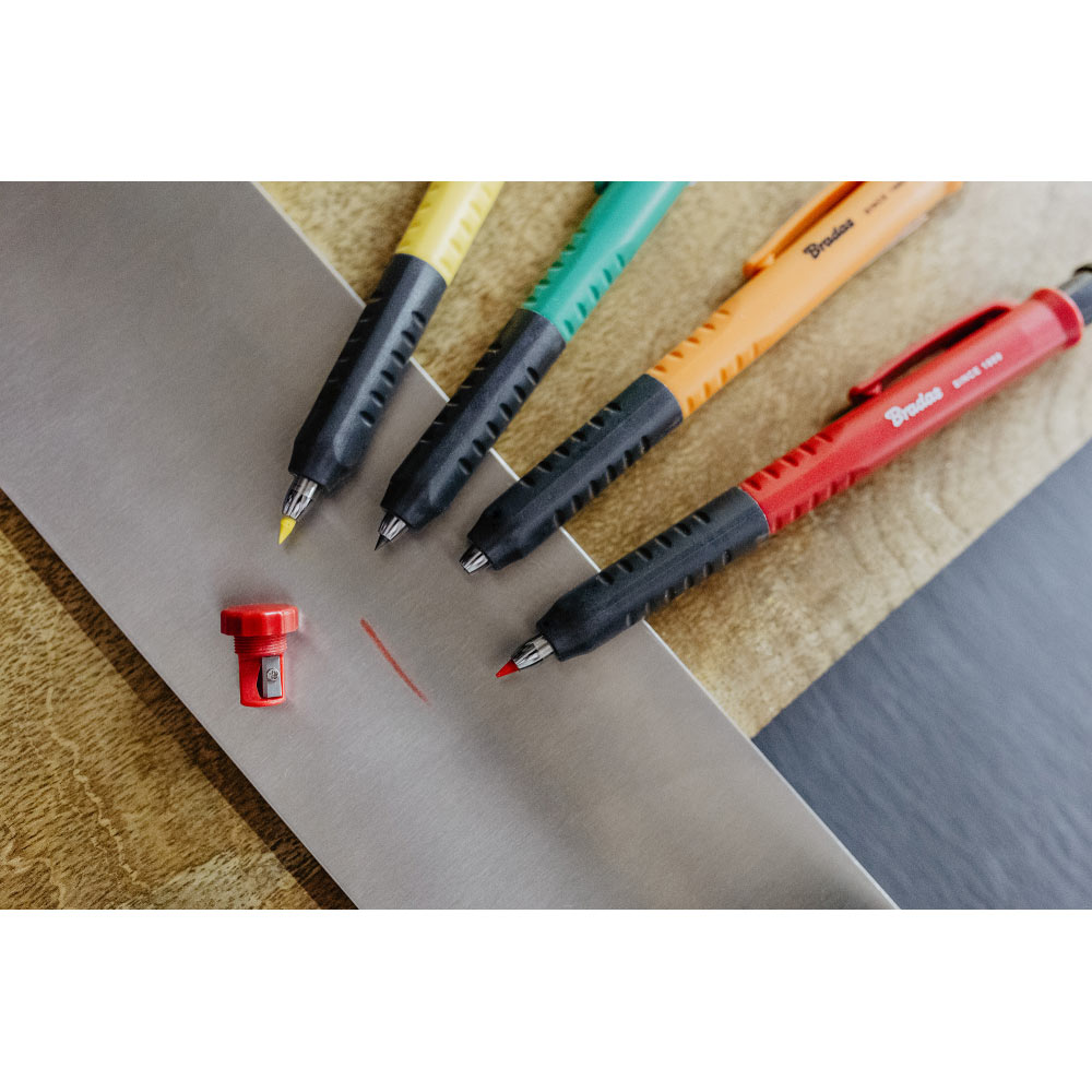Практичний і міцний автоматичний олівець для столярних робіт довжиною 14,5 см — незамінний інструмент у роботі кожного професіонала. Завдяки міцній конструкції з АБС-пластику та металу, а також вбудованій точильці ви завжди готові до точного маркування на різних поверхнях. Ідеально підходить для отворів, щілин і кутів, куди не дотягнеться звичайний олівець.Набір стрижнів для автоматичного будівельного олівця, різнокольорові, DIY-PCAR02/6B