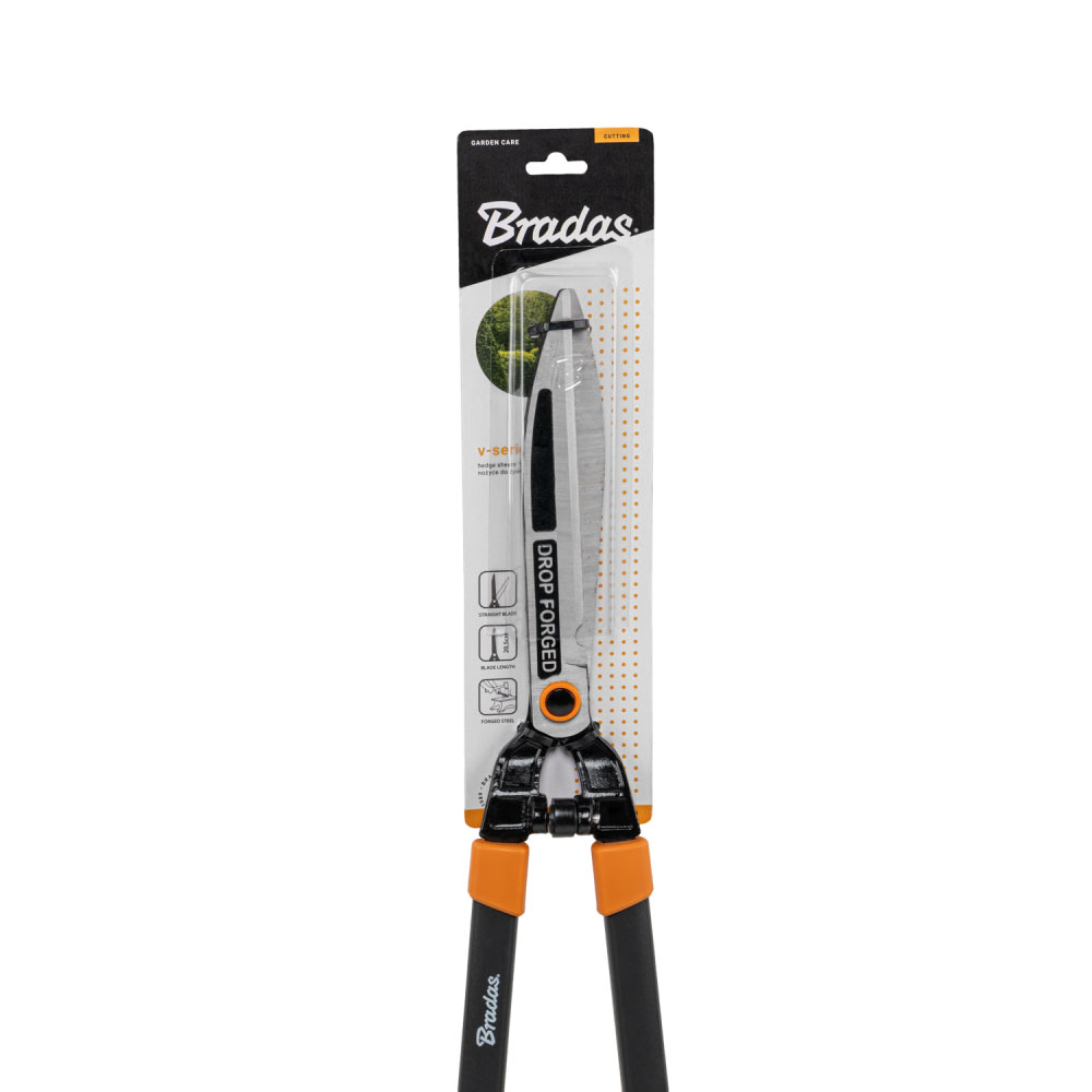 Ножиці для живоплоту V-SERIES, коване пряме лезо – ідеальні для створення акуратних форм у вашому саду. Міцне коване лезо з вуглецевої сталі, покрите захисним покриттям, гарантує тривалу гостроту та легке різання, а ергономічні ручки мінімізують втому рук.Технічні характеристики