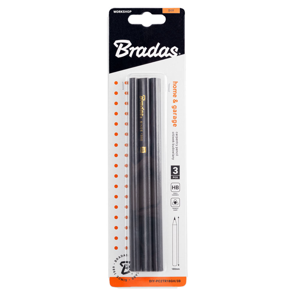 Поперечний трикутний переріз. Виготовлені з твердої деревини. Використовується для нанесення позначок, розмірів і малювання різних фігур.Олівець будівельний HB, TRIANGLE, 180мм, 3 шт., графіт, DIY-PC2TR18GH/3B