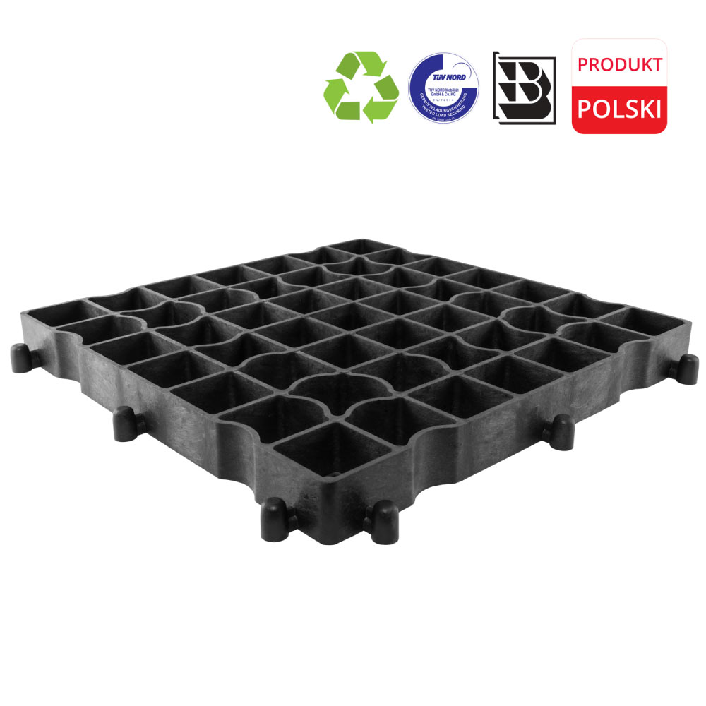 Стабілізуюча решітка HEAVY GRID для трав'яних і гравійних покриттів - це міцне рішення для всіх, хто потребує стабільного, естетичного та екологічного покриття. Виготовлена на 100% з перероблених матеріалів, вона забезпечує міцне зміцнення ґрунту під травою, гравієм або декоративним каменем - ідеально підходить як для саду, так і для паркінгу або під'їзду.Технічні характеристики