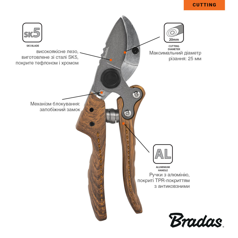Секатор з ковадлом для обрізки гілок, сталь SK5, V-SERIES, KT-V1082