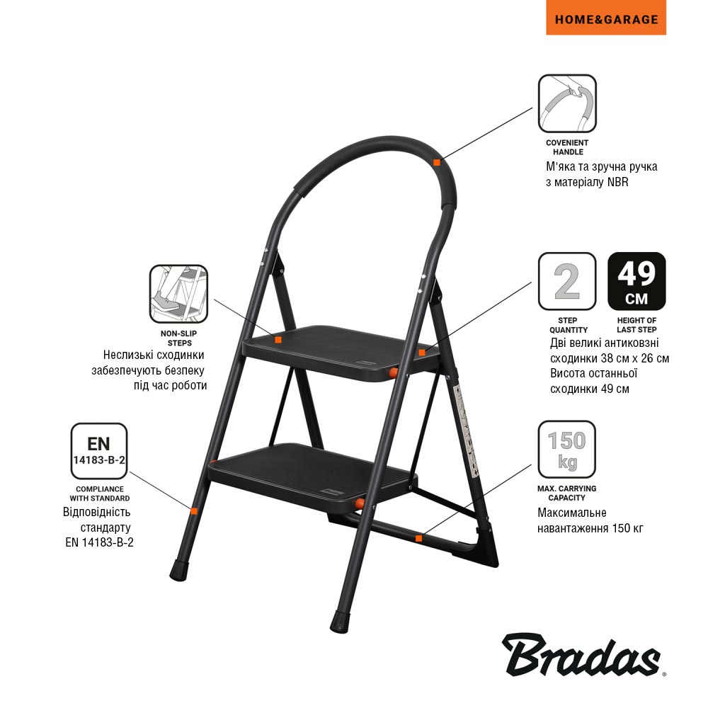 Складна драбина, 2-ступенева, висота останньої сходинки 49 см, DIY-LD01/2