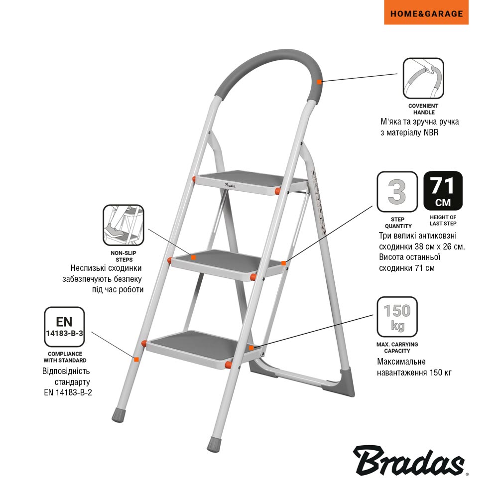Складна драбина 3 сходинки, висота останньої сходинки 71 см, DIY-LDWL02/3