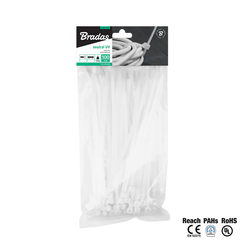 Основною сферою застосування нейлонових кабельних стяжок Bradas є електротехніка, оскільки стяжки - це економічний, швидкий і якісний засіб для обв'язування, кріплення, бандажування та структурування кабелів та проводів.Також пластикові хомути знаходять широке застосування в різних виробничих і побутових процесах, наприклад, для кріплення рекламних банерів, закріплення товарів на картонних експозиторах, підв'язки рослин, а також безліч інших способів застосування.