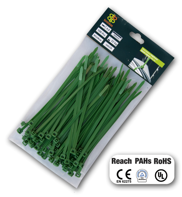 Основною сферою застосування нейлонових кабельних стяжок Bradas є електротехніка, оскільки стяжки (хомути) - це економічний, швидкий і якісний засіб для обв'язування, кріплення, бандажування та структурування кабелів та проводів. Також пластикові хомути знаходять широке застосування в різних виробничих і побутових процесах, наприклад, для кріплення рекламних банерів, закріплення товарів на картонних експозиторах, підв'язки рослин, а також безліч інших способів застосування.Нейлон 6-6, з якого виготовлені кабельні стяжки Bradas, характеризується низьким коефіцієнтом тертя, нерозчинністю у більшості органічних розчинників, стійкістю до дії солоної води, слабких розчинів кислот і лугів.