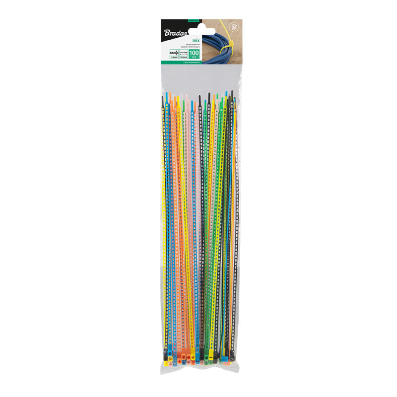 Стяжки багатофункціональні, 3,6 х 300 мм, 7 кольорів - 100 шт., TS1336300M/100