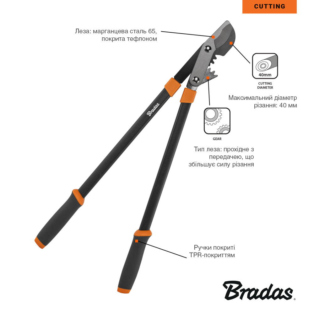 - Тип леза: прохідне з передачею, що збільшує силу різання