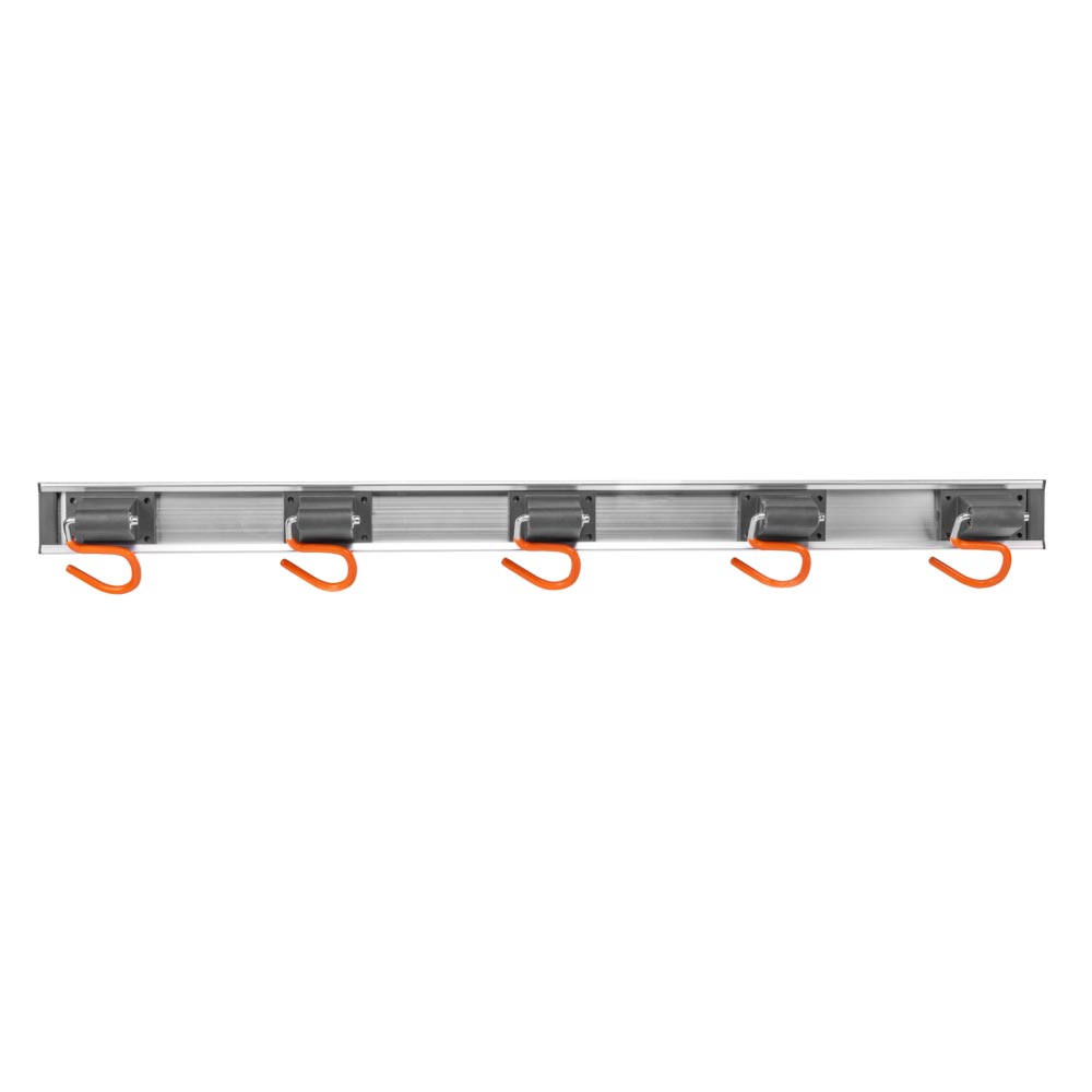 Алюмінієва рейка довжиною: 79 см. Гачок виготовлений з високоякісної сталі, покритої ПВХ. Призначений для інструментів діаметром 15-30 мм. Максимальне навантаження: 2 кг.Вішалка для інструментів, 5 кріплень, DIY-HG1612